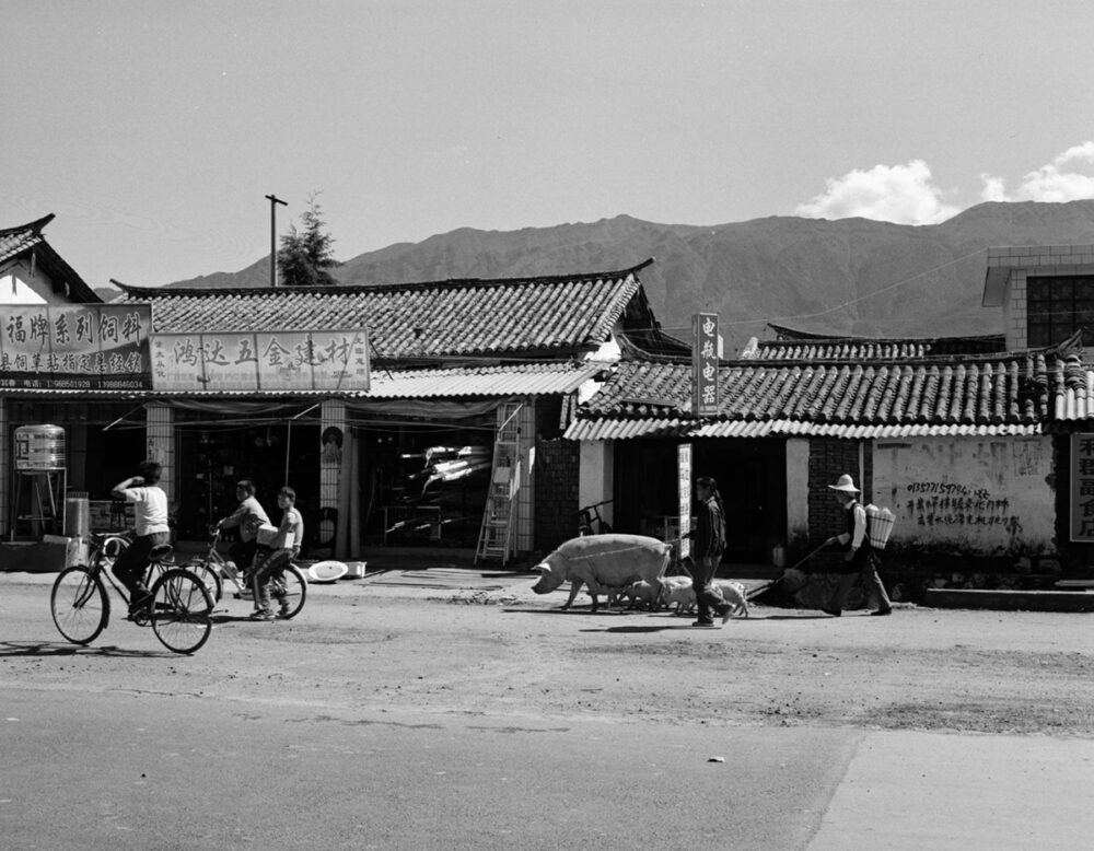 麗江の街は中心部が石畳の路地と水路がきれいな古城エリア。そこから外れたところも旧い家が並んでいるが、より田舎な雰囲気。