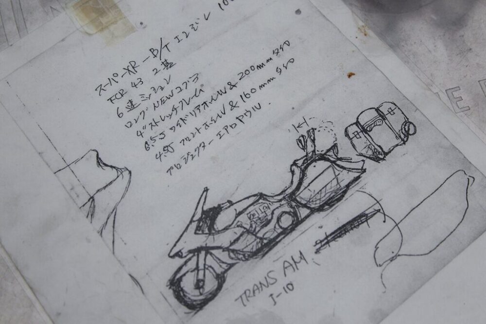 2000年にZAK柴崎氏自身がアメリカへ渡り、広大な大陸を縦横無尽に走った経験から生まれたトランザムの構想イラスト。現地で描いた起点である。