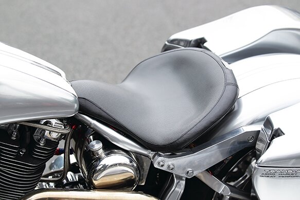 通常、ツアラーカスタムといえば1980年に登場したFLT以降、ラバーマウントモデルが主流であり、それが『バガーカスタム』となっているのだが、トランザムはあえてエンジンがソリッドマウントされるソフテイルフレームをベースに採用。ZAK柴崎氏いわく、それはやはり「ハーレーらしさ」を求めた結果であるという。