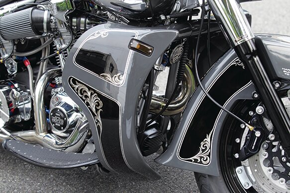 さらにいえばスタイルの中に純正の要素を残すのもサンダンス・カスタムの特徴であり、カウルは伝統のFLHバッドウィングフェアリングがモチーフ。すべてにおいて『ハーレー』であることにこだわるのも、スペシャリストたるサンダンスの一貫した姿勢だ。その中での究極形が、この『トランザム』である。