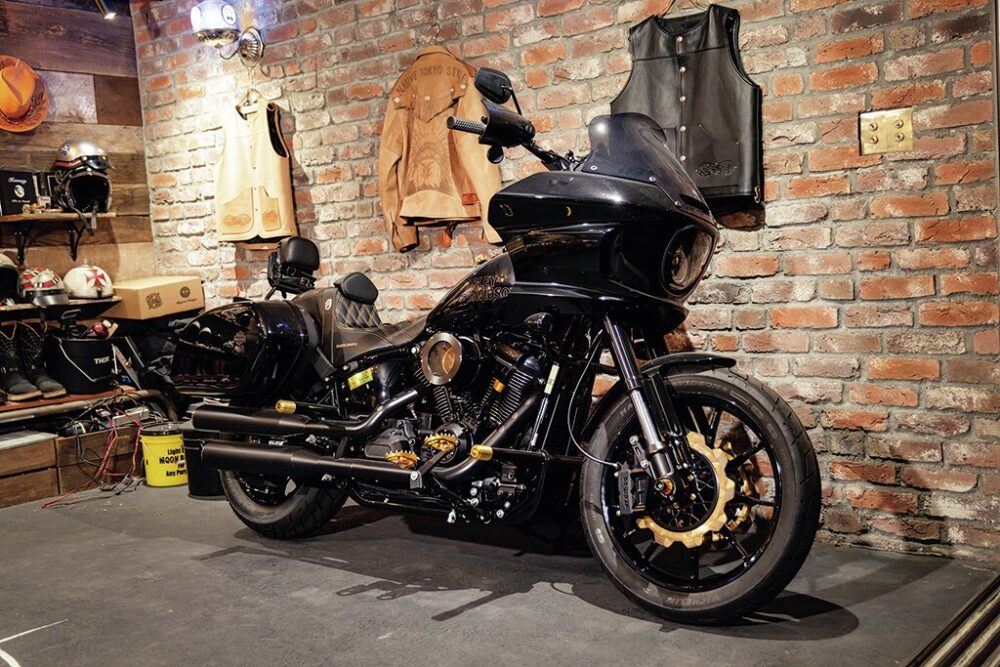 2023 FXLRST|足まわりやハンドルまわりにゴールドアルマイトのパーツを取り入れ、ブラック&ゴールドで統一したゴージャスなスピードクルーザー。クラウス製のライザーやブレンボ製キャリパーなど、最先端のパフォーマンスパーツでブラッシュアップ。