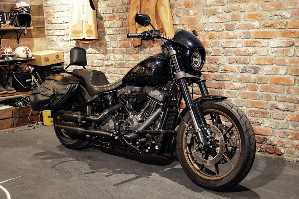 2022 FXLRS|こちらが兄のYacciさんの愛車。ローライダーSのオリジナル装備を活かしながら、サイドバッグやハイウェイペグを装備し実用性をアップデート。MItsuさんのSTと比較してコンパクトなポジションで、スポーティな個性が引き立てられる。