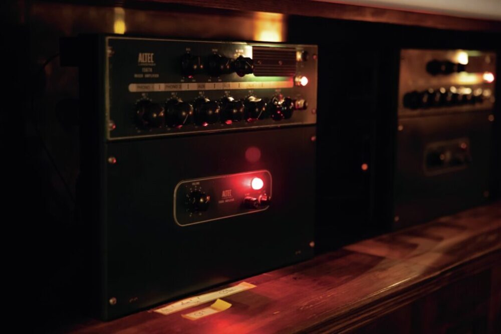 通常営業時はジャズ喫茶として、シアター営業時にはバーカウンターの背後に大型スクリーンを設置して、劇場仕様へと姿を変える。ソファはTRACK FURNITUREとのコラボレーションで、店内のソファやテーブル、食器、グラスに至るまでここで使われるもののすべてが購入可能。
