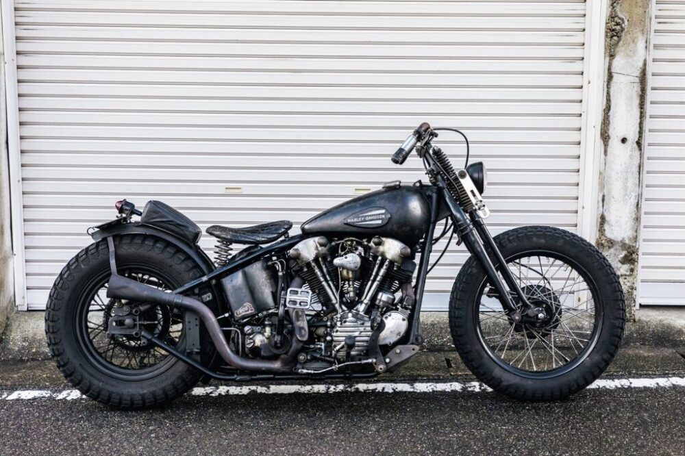 1946 FL|今から9年前に入手したナックルは、リアフェンダーに当時のFORDのスペアタイヤカバーを流用するなど時代考証にもこだわった一台。製作は「ゼロエンジニアリング」で、各地のイベントにもこれで遠征している。