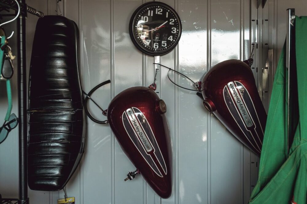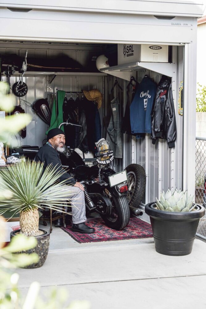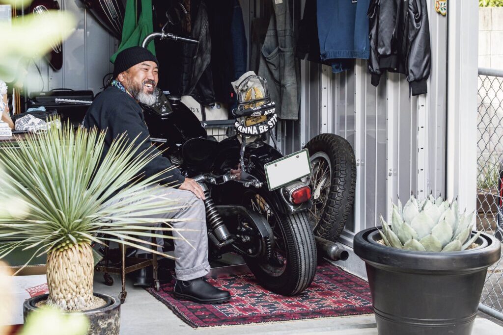 旧車のシェビートラックに乗り、旧きよきアメリカとアガベを中心とした、エキゾチックプランツを織り交ぜた唯一無二の植物店「カルティベートストア」を営む大塚さん。3年ほど前に念願のハーレーを買ったことをきっかけに自宅にガレージを構えた。
