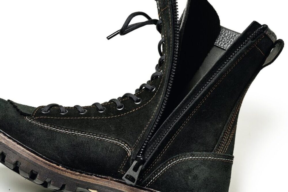 SPPNのブーツの特徴であるサイドジップによって、シューレースを縛ったままでも脱ぎ履きは非常に楽。