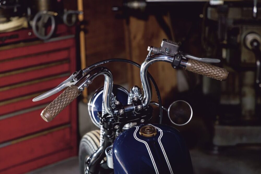 ハンドルはワンオフ。マシンのコンセプトでもある丸みを帯びたデザインをここにも配している。ライザーはFORK製ナローライズクランプをチョイス。