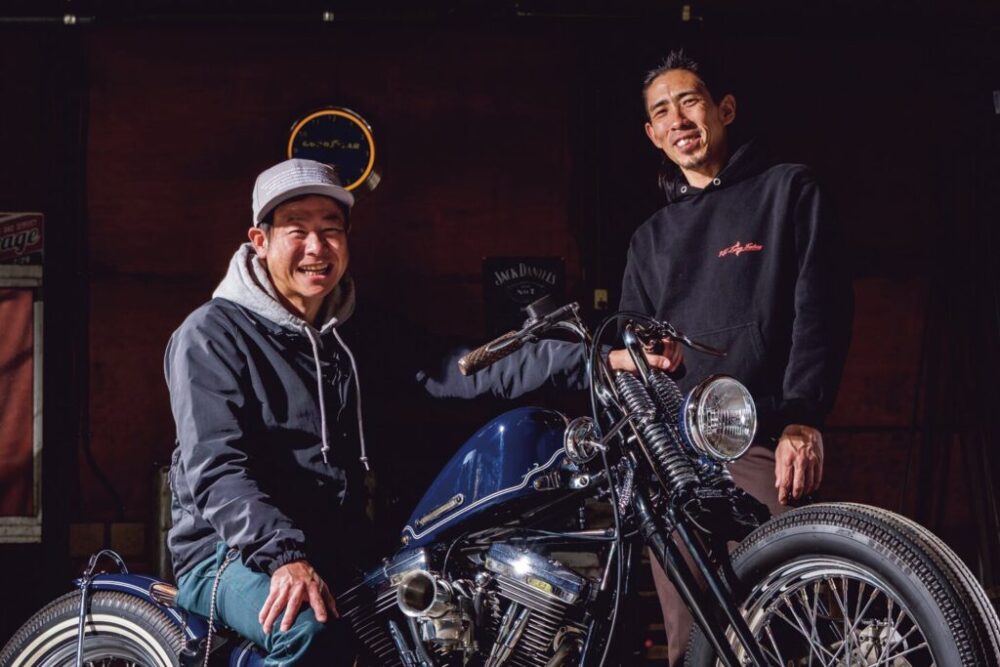 オーナーの若林さん(左)とビルダー城戸さん。製作から数年経つが、「納車時の輝きのまま大事に乗り続けてくれていることがうれしい」と城戸さん。