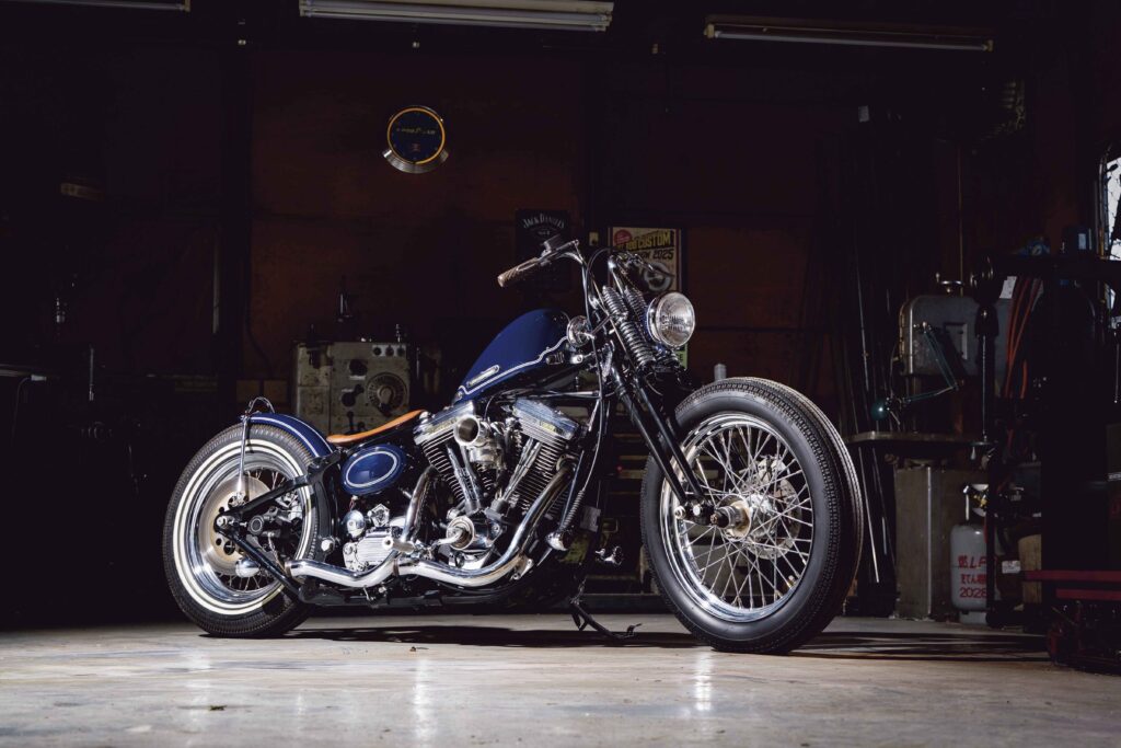 「ショベルのチョッパーに乗りたいけどエンジンに不安がある人に『エボなら乗りやすいし安心ですよ』という提案をしたくて作りました。それでいて、“ショベルリジッドに負けないようなスタイルのエボチョッパー”が目標でした」