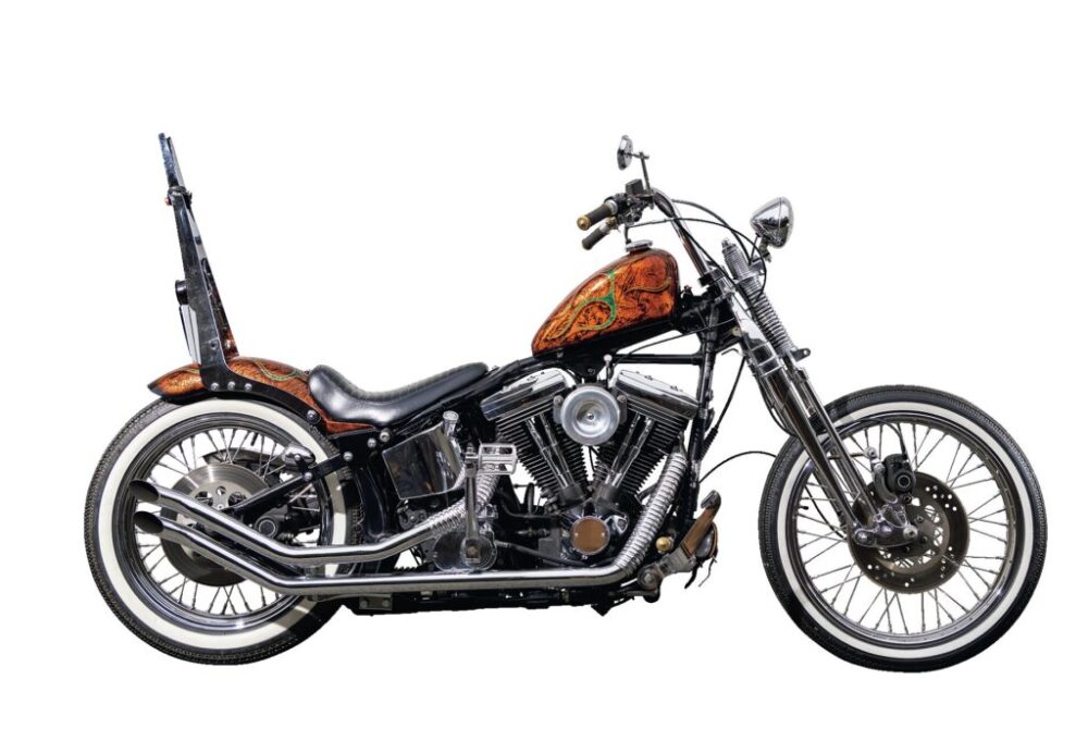 ディーラー勤務時からコツコツとカスタムを続けており、木村さんいわく「まだ未完成」というこのマシンは89年のヘリテイジクラシックがベース。90年代チョッパーを彷彿とさせるスタイルやペイントワークが印象的だ。木村さん自ら手作業でポリッシュしたというエンジンの輝きがまぶしい!