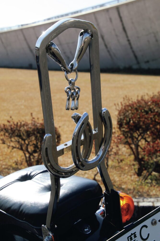 自分らしさを加えたいと愛車のスポーツスターにはお守りとして愛馬2頭の蹄を付けたシッシーバーをワンオフで製作。新しい相棒のFXLRにもいずれ付けるのかな。