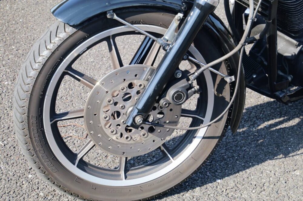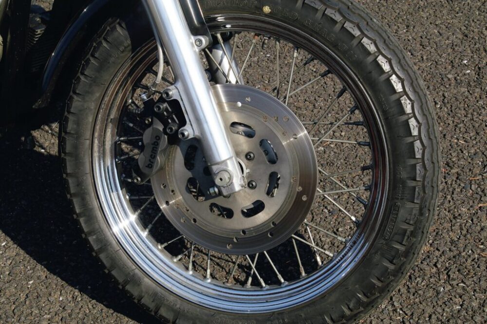 サンダンス謹製のトラックテックフォークスプリングやリアショック、さらにフォークのオフセット量を適正化するトリプルツリーで足まわりを改善。さらにブレンボ製キャリパーをおごってブレーキを強化した。これによって走りが快適になった上、愛着もあって手離せないとか。