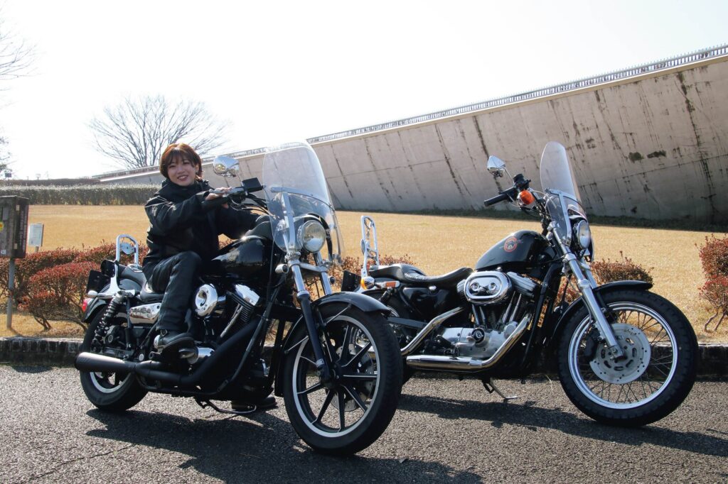 最初はヤマハTWを購入したものの、周囲はハーレーばかりで走るペースが合わず、「私もハーレーに乗ろう」と決心した。そうして購入したのが「XLH883ハガー」。もともと馬に慣れ親しんでいる彼女だけに、ドコトッドコトッと馬が走っている時の蹄の音に似たアイドリングを奏でるハーレーがハマらないハズがない。大きな事故も経験したが、バイクが怖くなるどころかますますハマり、ハガー購入から1年も経たずに、ついには「FXLR」を増車。ちょっとハマりすぎでは……⁉