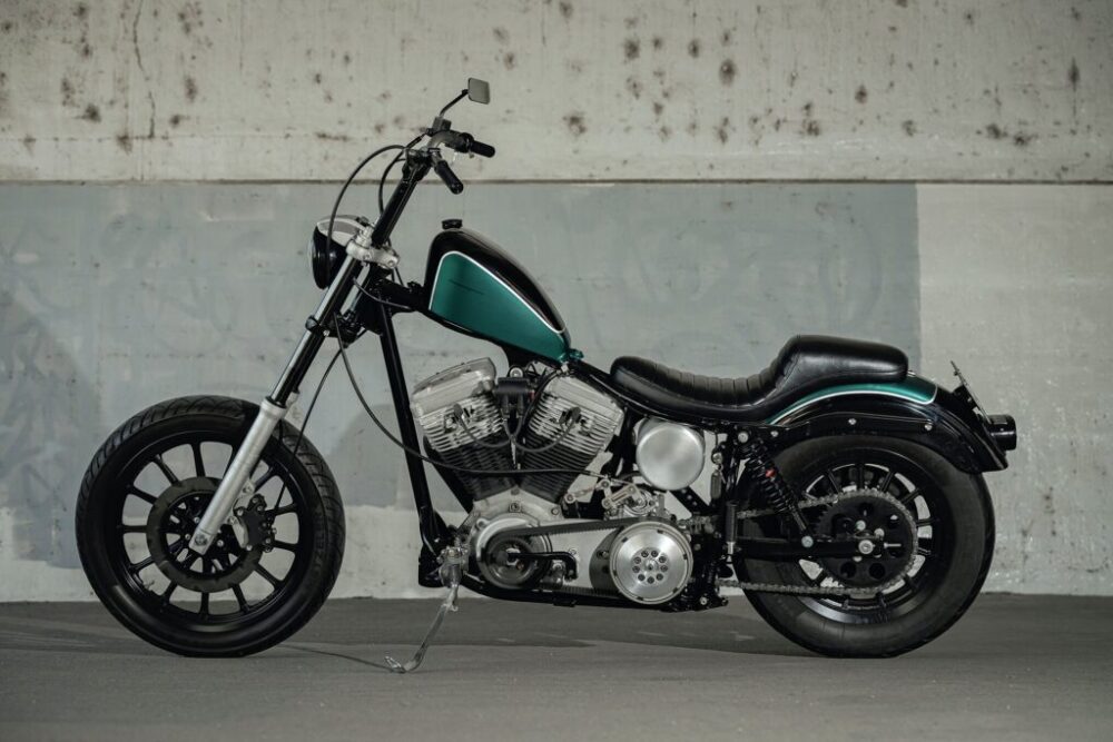 これ見よがしにカスタムディテールを主張するのではなく、すべてを一体化させたトータルバランスで魅せるセンスこそヒューモンガスのフルカスタムが“都会的”と形容される理由だろう。イージーライドを実現するエボのパフォーマンスと高度なカスタムの色気を内包する一台は、ヒューモンガスのカスタムマナーが正しく発揮されたチョッパーである。