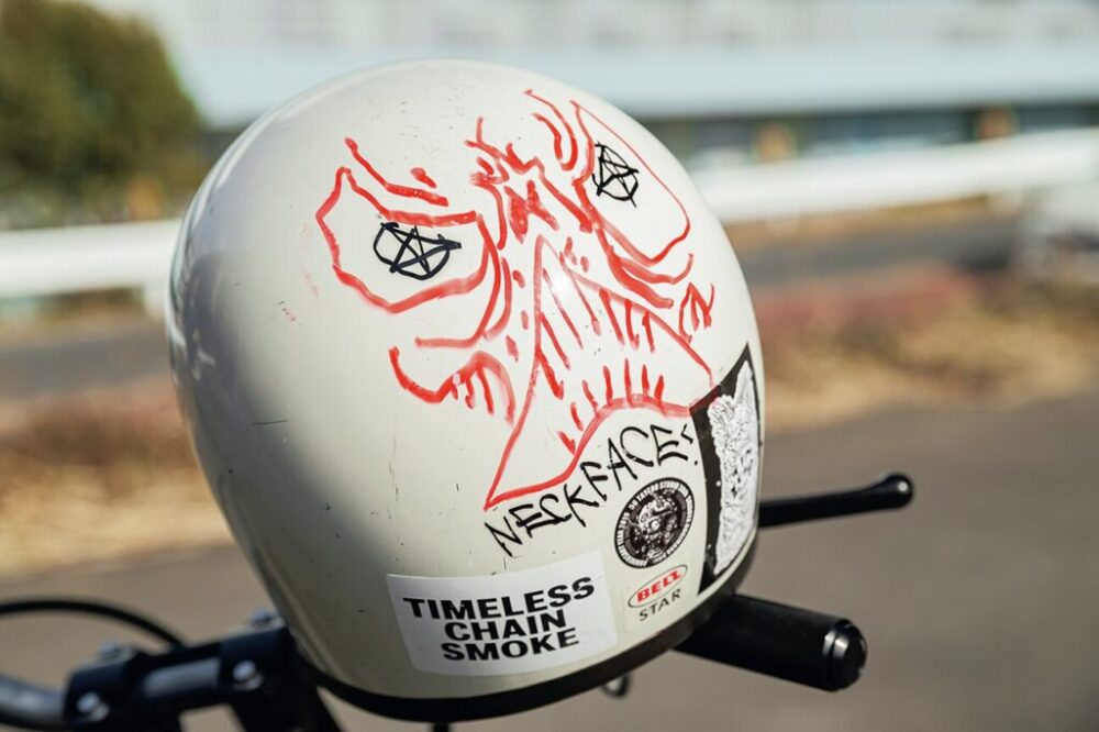 愛用ヘルメットは70sBELL“STAR”。ワコマリアとジョイントワークを展開したアーティストNECK FACEのグラフィティがオーナーのフェイバリット。