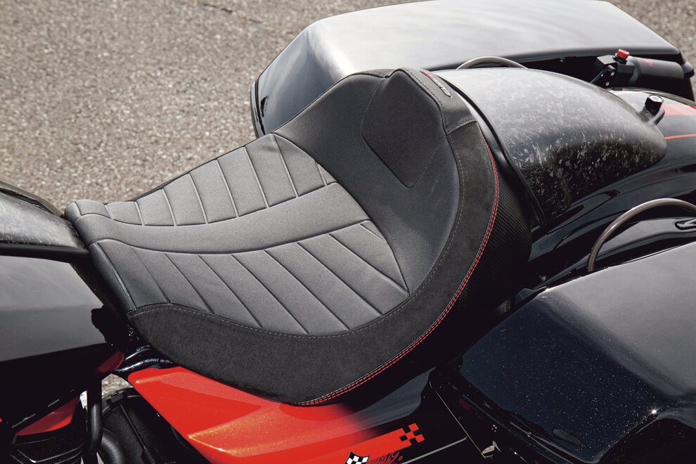 自社モデルをベースに、自社製パーツを使ってH-D社がプロデュースするプレミアムなカスタムモデルが「CVO」。中でも人気のバガーレースの雰囲気を落とし込みつつ、このモデルだけに搭載されたハイパワーなエンジンやサーキットにも対応する前後サス、さらに鍛造カーボンパーツを随所にあしらった「ST」モデルは、世界的にも人気となっている。今年度から新たに「CVOストリートグライドST」が登場。ユーザー層がさらに拡大しそうな気配だ。