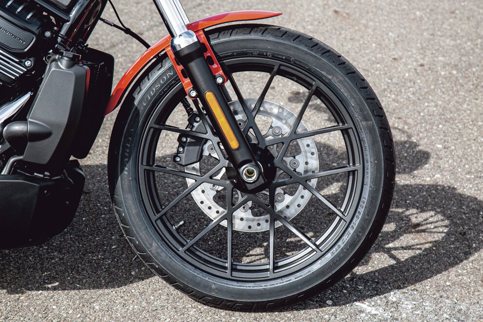 伝統のスポークホイールとキャストホイールのよさを融合したような複雑なデザインのホイールは、この色のモデルだけに標準装備されるもの。