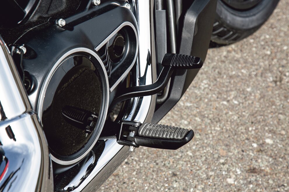 低いシート高とミッドコントロールのステップが織りなす、安心感のあるライディングポジションは、まさに空冷スポーツスターそのもの!!