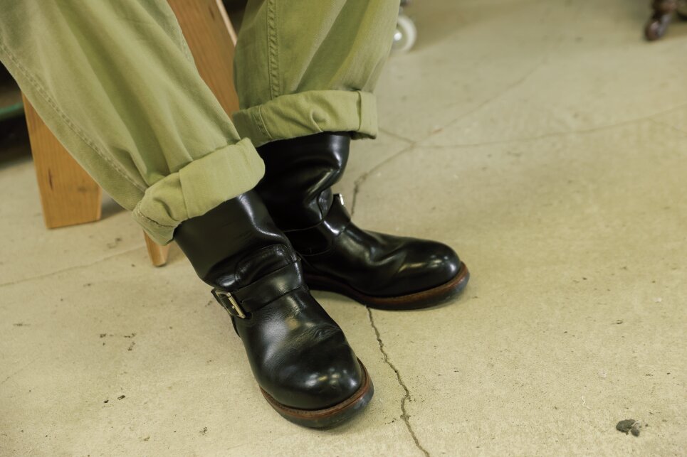 「ワークブーツの王道であり、スタンダードな銘品が揃うのは言うまでもないですが、異なるオーナーによっていろんなモデルを多様な履きかたをされてきたブーツを見ることができるのはとても面白いですね。まさに十人十色。特にオロ・レガシーを使ったブーツだとエイジングが顕著に出ますね」