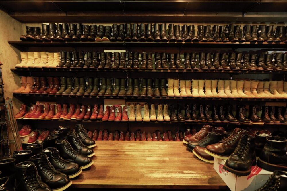 ヴィンテージやオールドだけでなく、現行物も幅広く揃えており、表革、スウェードなどのアッパーの素材に関係なく、独自のメインテナンスによりコンディション良好で店頭に並ぶ。