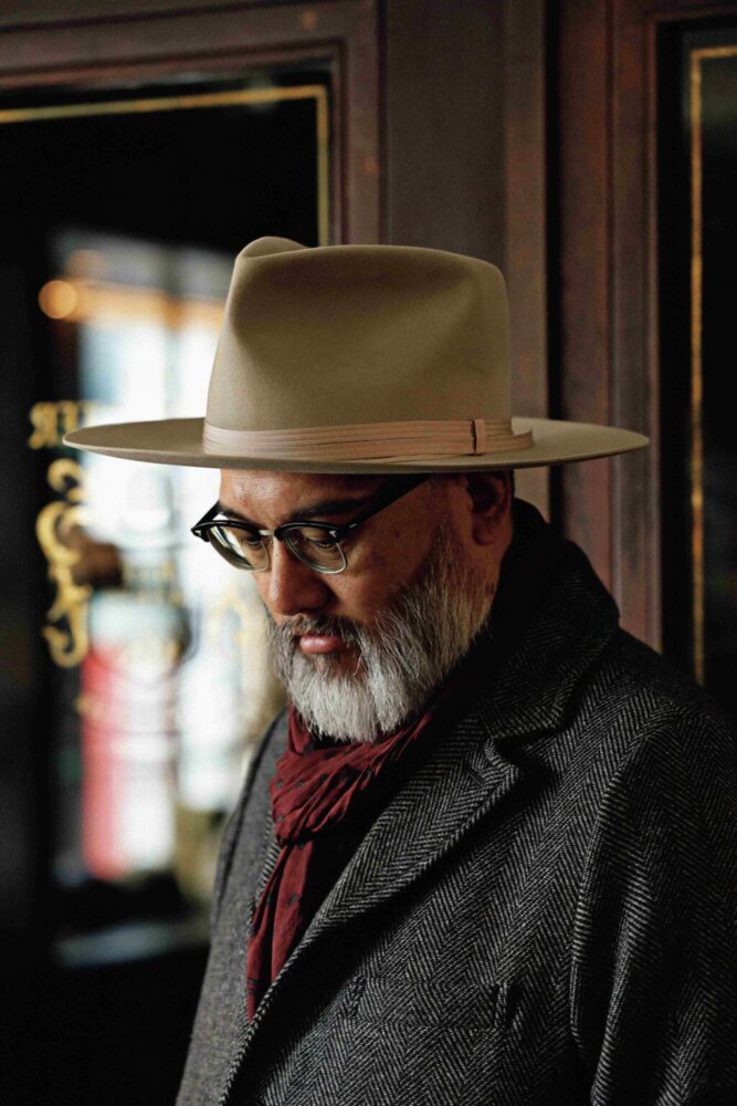 ”野生の牙”を意味するネーミングの通り、1940年代のウエスタンスタイルに、特注の200gウエスタンウエイトのビーバーを落とし込んだ。今季の象徴的なモデルである
