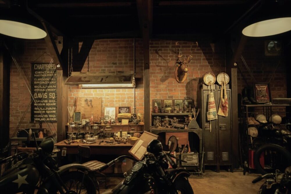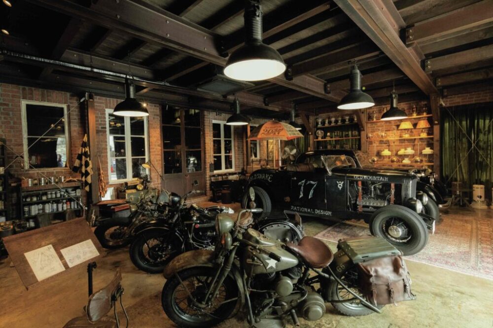 キャメルレザーを使用するチャアや真空管アンプなど、他に類を見ない個性的なアウトドアギアに始まり、アパレルやインテリア、無人島のグランピング施設経営、そしてオープンしたばかりの旗艦店『オールドシアター』など、幅広い展開に注目が集まるオールドマウンテンだが、そのルーツは代表である辻ノ内氏のガレージライフにある。