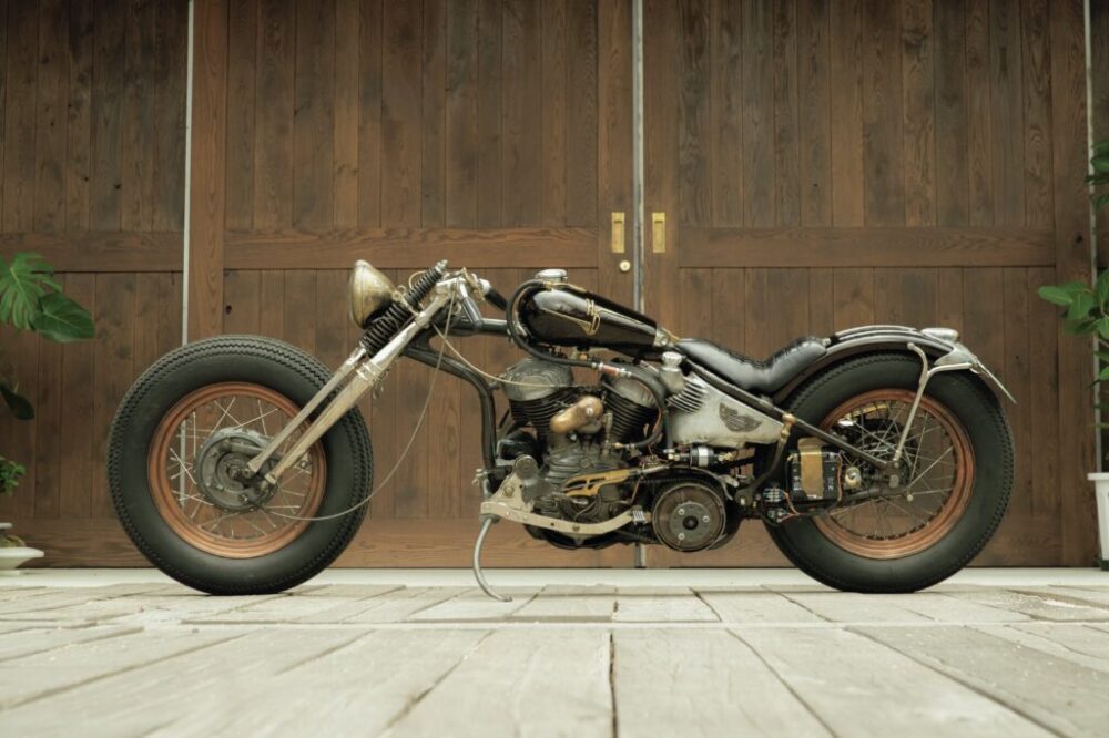 レジェンドビルダー木村信也氏が、ゼロ時代の初心を意識してビルドした’46年WL。当時のカスタムシーンを席巻した、前方にストレッチしたグースネック・フレームを骨格とする低くシャープなシルエットが最大の特徴。
