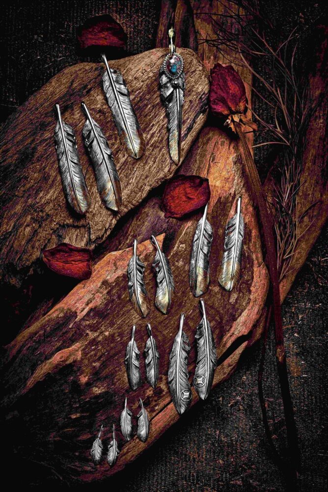 K18 Eagle Crest / Point Gold Feather / TQ Black Web Matrix / Gold Solder