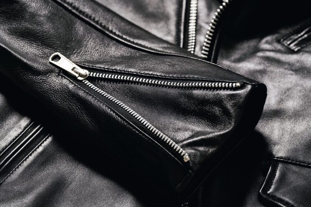 シャープな印象のスタンドカラーのシングルライダースジャケット。両サイドにはジッパー付きのスラッシュポケットが装備され、機能性も高い。春や秋にはアウターとして、そして冬にはこの上にダウンジャケットやコートを着用して、インナーとしても活用できる汎用性の高さが魅力だ。マテリアルは厚みのあるカウハイドを採用。58,000円