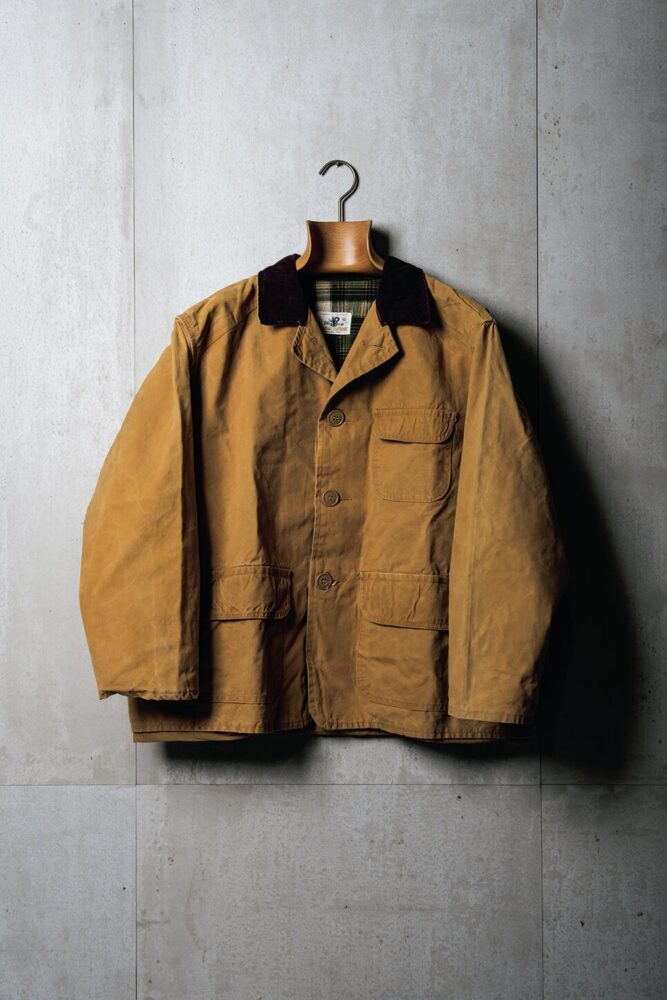 かなりコンディションの良いブラウンダックのハンティングジャケットは、アメリカのマイナーブランド。1950年代頃のもので、襟はコーデュロイを配しており、機能的だ。