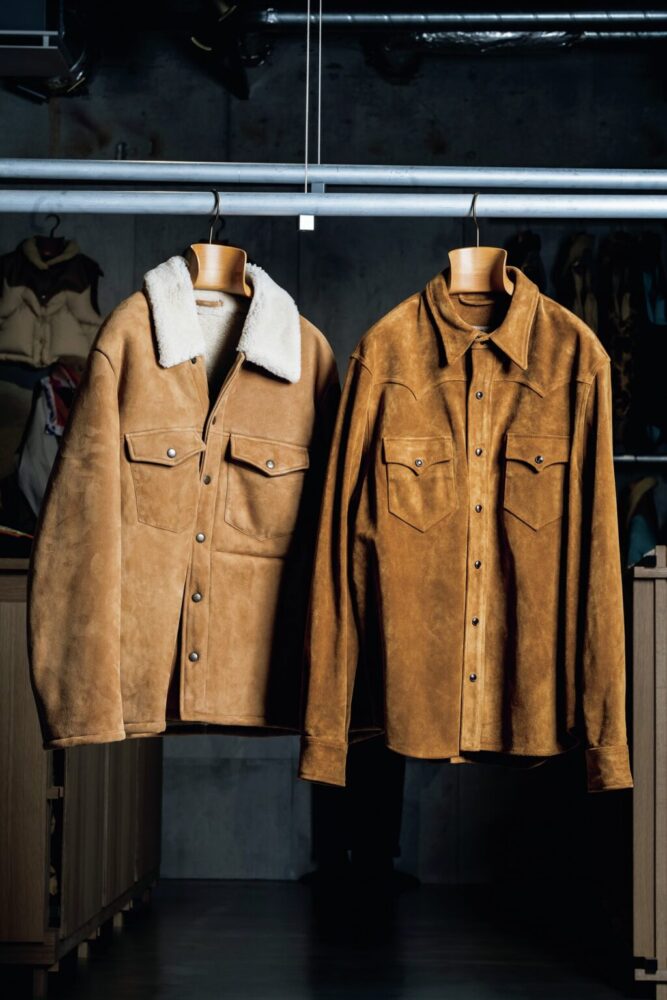 アレッサンドロが敬愛するウエスタンアイテムも充実。イタリアの高品質な革を一流のファクトリーで生産。シャツ¥198,000、ジャケット¥385,000(すべてアーケオス クラブ 銀座)