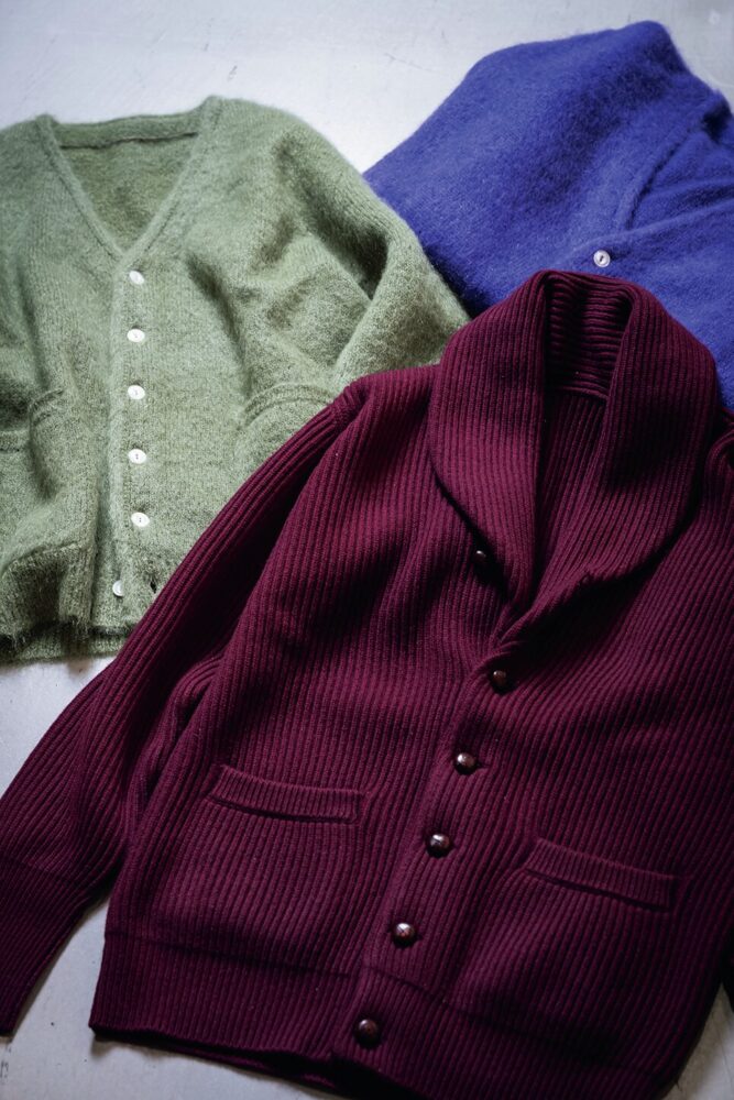 すべてペルージャで生産しているが、原毛はイギリスなどのものを厳選。カーディガンはブリティッシュウール、ショールカラーはカシミヤ。右/209,000、左/各132,000(ともにアーケオス クラブ 銀座)