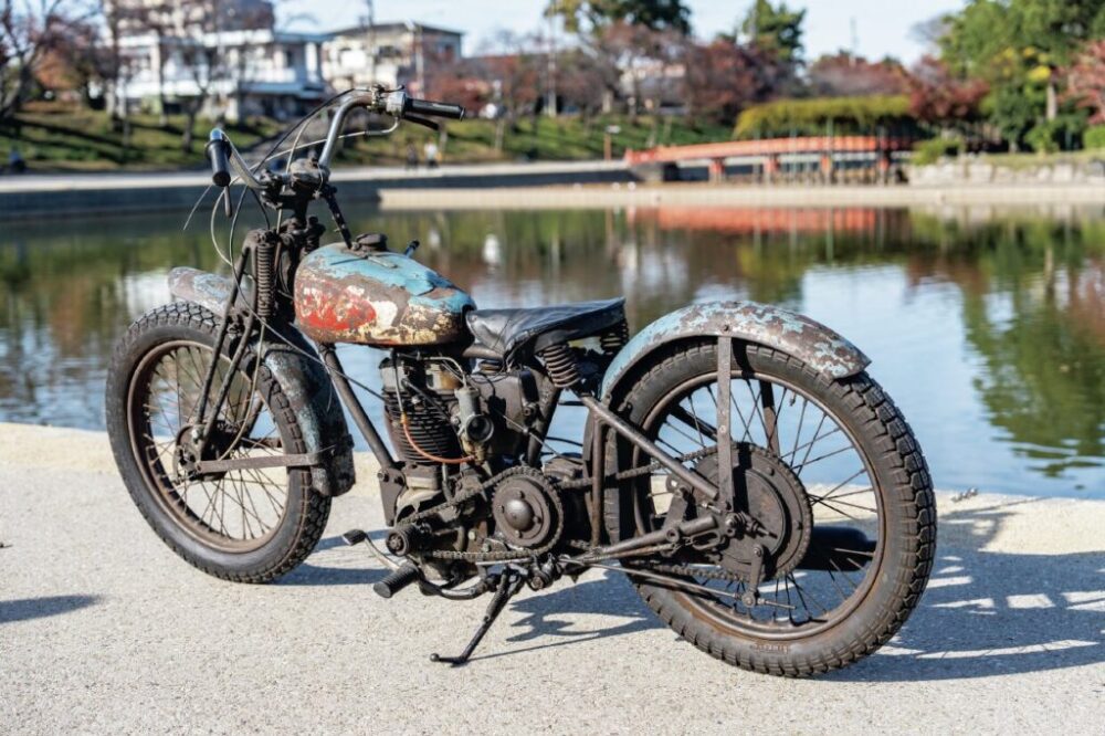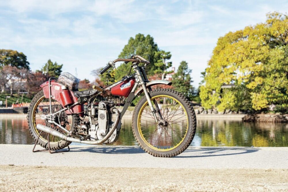 トリコロールカラーが残るフューエルタンクの両サイドにはミゼットの文字が描かれる。エンジンは英国車からヒントを得た250㏄ OHVシングルで、BSAトランスミッションを使用している。250㏄はオートレースのクラスでは4級車にあたる。