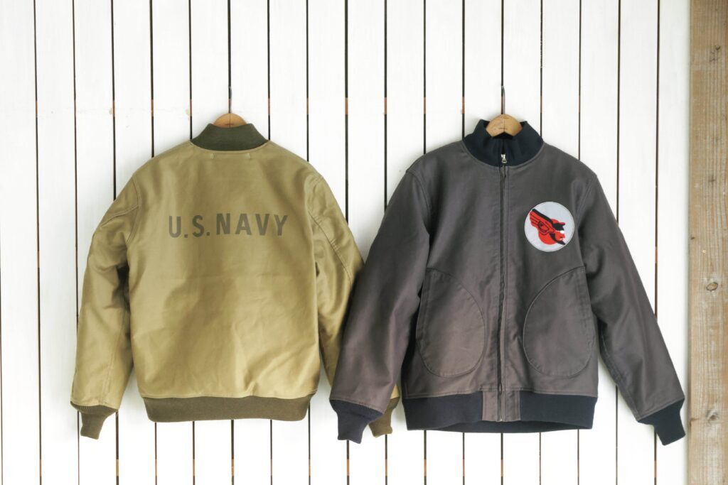 1930〜40年代のU.S.NAVYデッキクルーたちが着用したモデルを基に再構築。希少性の高い最初期に作られた個体と同様にアルパカ混ウールライナーを採用し、フェード感のあるボディとウールリブ、そしてショート丈によって防寒性とデザイン性を両立した。胸にスコードロンパッチ、背面にステンシルを配したカスタムモデルとプレーンの2型を用意。¥82,500_(custom) / ¥79,200_(plane)