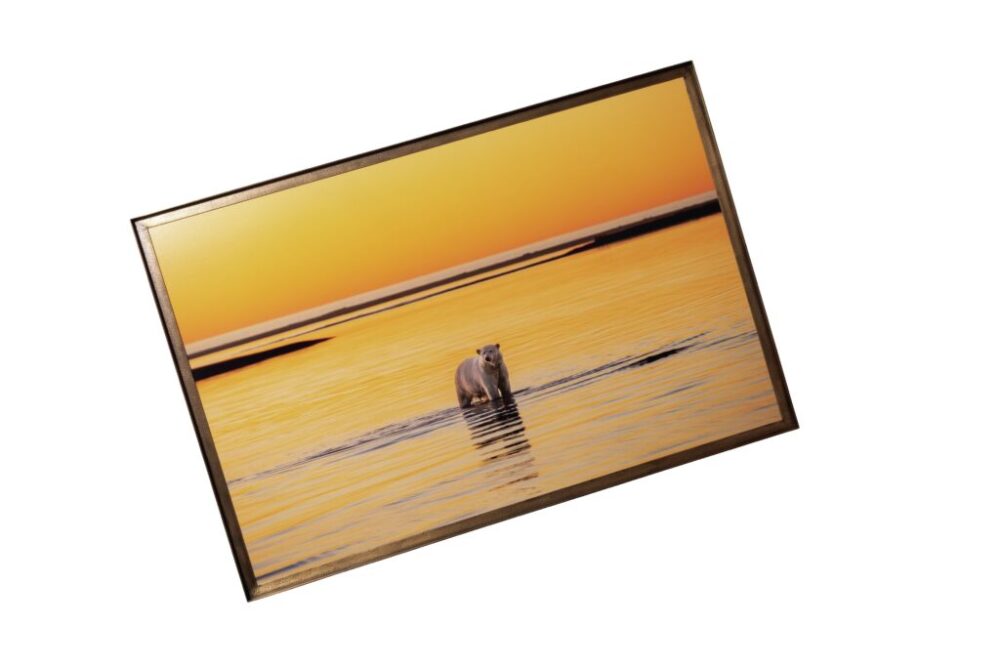 アンクルムーブルで個展が開かれていた際に購入した、自然写真家・岡田雄介さんの作品。展示を見ていて、真っ先に目に入ったのがこの白熊の写真だった。浅瀬を歩く白熊と、背景に広がる金色がかった色合い、その印象を引き立てるゴールドのフレーム。その組み合わせに惹かれて購入。同時に写真集も一緒に手に入れた。