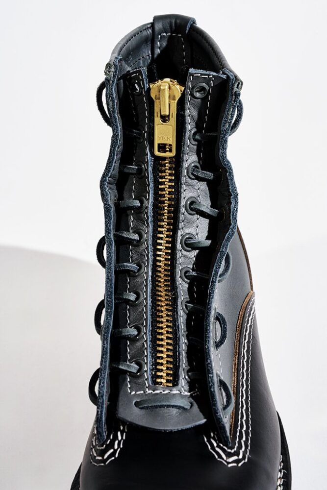 スレートカラーで仕上げたレースインジッパー。アイレット、シューレースもスレートカラーで仕上げているためソリッド感をより一層ブーストさせている。