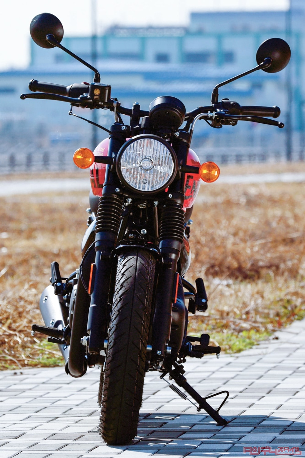 空冷単気筒エンジンは、すでに販売されている2機種と同じモノで、スタータースイッチを押した際の目覚めがいい。そしてアイドリング時から単気筒らしい適度な鼓動感が伝わってくる。そこから、勢いよくアクセルを開けようが、逆にゆっくりと開けようが、その開けっぷりに合わせて、スムーズにエンジンの回転数は上がってくる。ライダーに従順で素直な出力特性だ。そして誰もがもっとも気になっているであろう、今回初採用となる前後17インチホイールが生み出す操縦性なのだが、これがまたポジションと同じようにしっくりとくる。バイクを走らせていると、とくに乗り始めなんかにハンドリングにちょっとした違和感があったりするのだけれど、そういった引っかかるところがない=扱いやすいバイクという図式が成り立つ。乗り手の意思に従順なエンジンと合わせて、込み入った街中をキビキビと走り回ることもできるし、ワインディングをスポーティに流すこともできる。まさに楽しむフィールド選ばない。