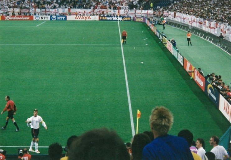 竹部:わかっていたんだけどね。で、おれのほうが多めに出していたから、「どちらかチケットを選んでいいですよ」って同行者に言われて、選んだチケットがスウェーデンのサポーターの真ん中だった(笑)。で、そいつはイングランドの席だったの。せっかく着ていったイングランド代表のTシャツを着替えて。でも、席は良くて、コーナーキックの横だったの。イングランドの得点はベッカムのコーナーからキャンベルのヘディングで入れたんだけど、目の前だったんだ。感動したよね。
