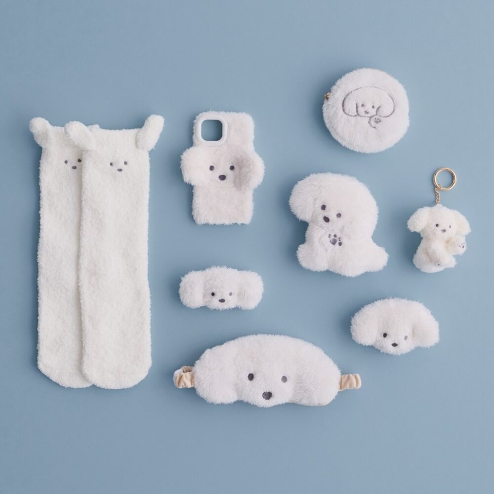 ポーチ付きショッピングバッグ \2,750、ぬいぐるみ風ハンドミラー \3,300、リール付きパスケース \2,970、ぬいぐるみチャーム \3,520、ぬいぐるみポーチ \2,640、コースター \880、ルームソックス \2,090