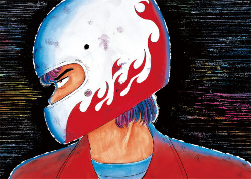 地元の友達で東京芸大に行ったやつがいて、彼にいろんな塗り方を教わったんです。「汚い色なんてない。隣に置く色次第で、汚くも綺麗にも見えるんだ」って言われて、その言葉がすごく響きましたね。「SKIN HEADの憂鬱」(電子版9巻第4話)の扉絵なんかは、最初は赤や黄色のポスターカラーで塗っていたんですが、気に入らなくて全部黒の墨汁で上から塗り潰しちゃった。それでも納得いかなくて、コンパスの針でガーッと削ったら下の色が出てきて……偶然だけど、まるで岡本太郎の“爆発”みたいになったんです。