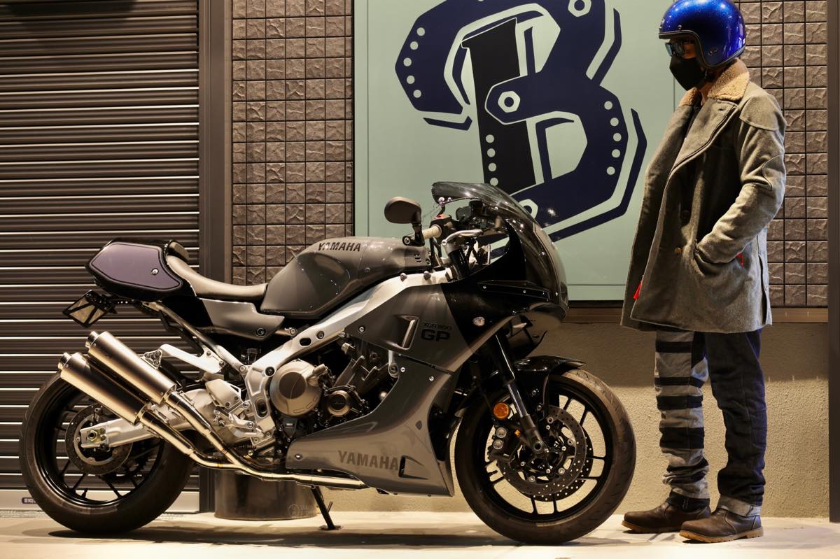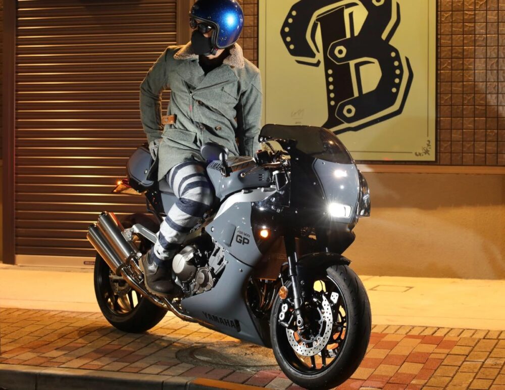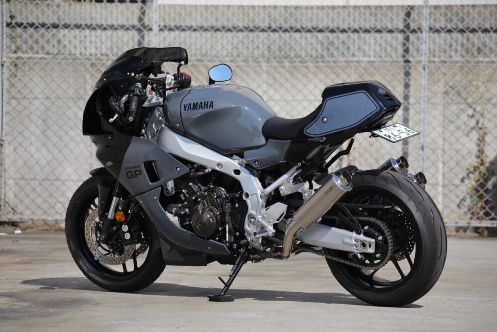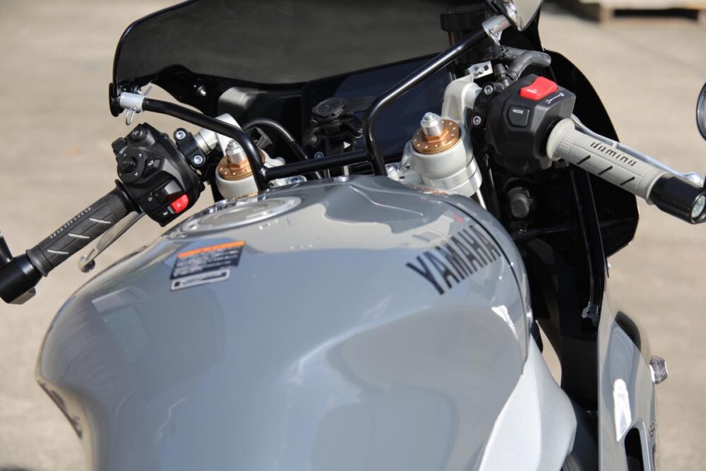 ノーマルはアンダーカウルがないけれど、ヤマハの純正アクセサリーを販売するワイズギアが一時期発売していたアンダーガードを装着して、レーシングマシンらしいルックスへと変貌を遂げた。