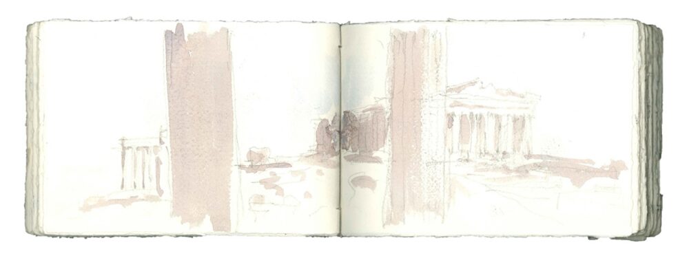 「還元」シリーズ(1983)のシルクスクリーン、1994年の水彩24点、さらに世界各地での訪問記録と構想を残した70冊超のスケッチブックの一部を公開する。