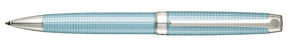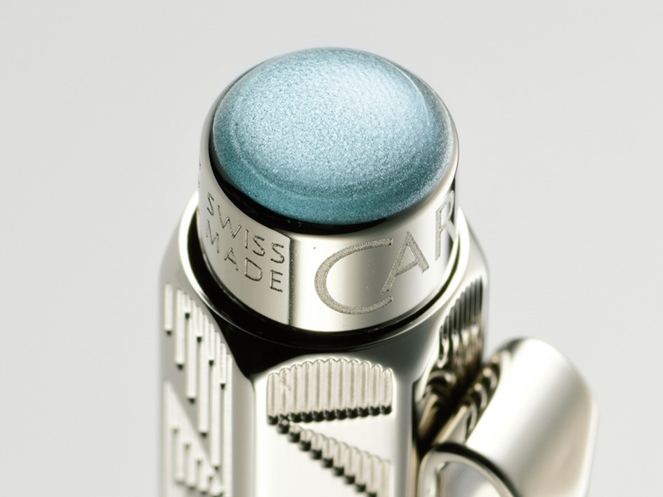 カランダッシュの拠点、スイス・ジュネーブにあるレマン湖の情景を写した「レマン」コレクション。ボディ全体を包むギロシェパターンには、同社が磨き上げてきた緻密な金属加工技術の妙が光る。澄みきった真冬の空気を閉じ込めたような、ポーラーブルーのラッカー仕上げが趣深い。書き手に静かな気品を添える特別な1 本だ。