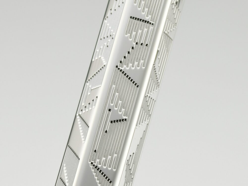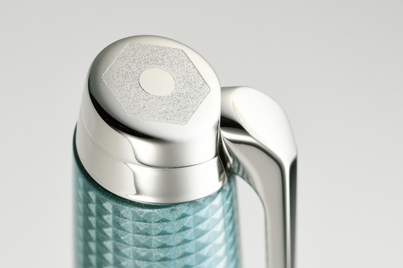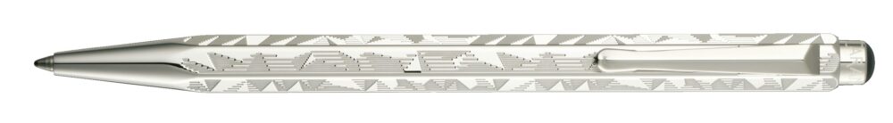 「エクリドール」は、ボディに細やかな彫刻を施した、シャープな六角形のフォルムが特徴的なコレクションだ。今回の限定作では、雪で覆われた山々に着想を得た柄を新たに採用している。プラチナ&ルテニウムコート仕上げの真鍮製ボディに、繊細な軸の彫り込みが映えて美しい。柔らかな手触りの牛革製ペンシースが付属する。