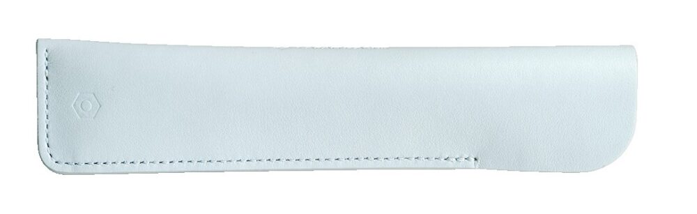 付属するペンシース。外側はポーラーブルー、内側はパールホワイトのバイカラー仕様。