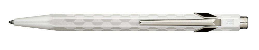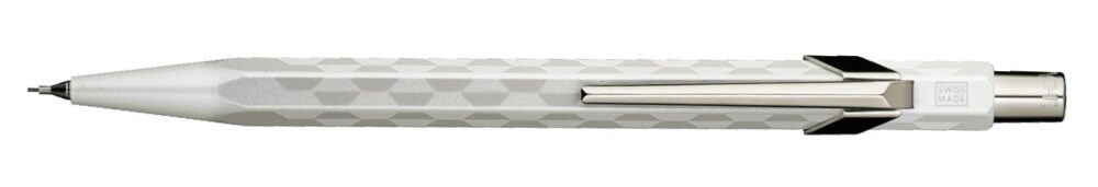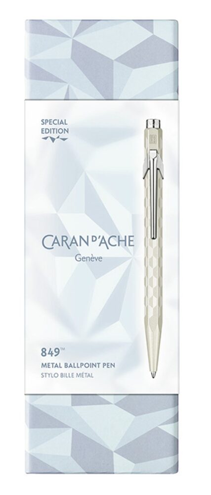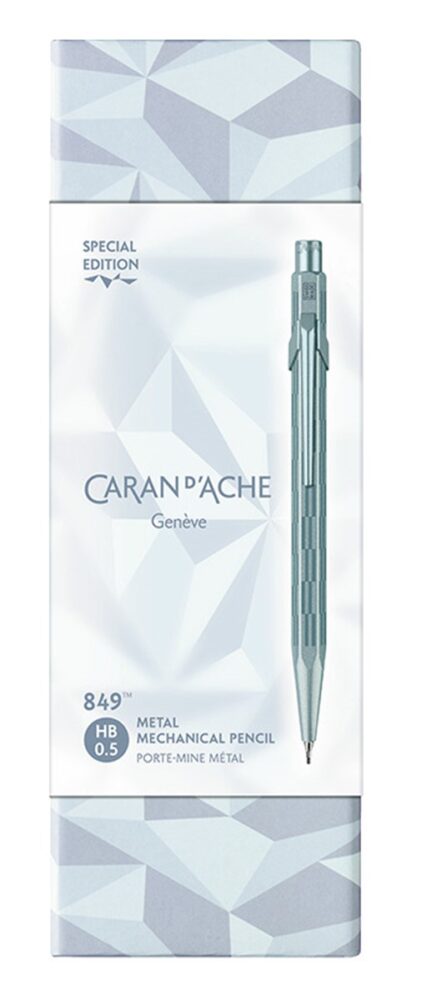 カランダッシュを代表する「849」コレクションの限定作。ボールペンとメカニカルペンシルは、きらめく霜や氷にインスパイアされたデザインで、ホリデーシーズンの高揚感を引き立ててくれる。アルミニウム製ボディの手触りはつるりとした質感で、軽量かつ耐久性も高い。手に取れば六角軸が自然と手にフィットする。