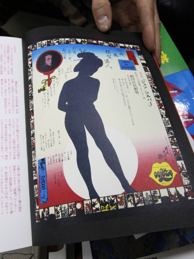 全ページを高精細スキャンして調整して作成したもので、基本的な内容は同じですが、当時の原画データが残っている作品やポスター画像はさらに綺麗なものに差し替えています。本書は長年稀覯本として高価な古書として入手困難なものだったのですが(綺麗なものだと 30000 円以上します)、今回横尾忠則書籍担当の製版チーム(凸版の富岡隆さんがリーダーです)が 1 年以上かけて丁寧に復刻作業をしてオリジナルを凌駕する仕上がりになったと思います。この『全集』の前に刊行された『横尾忠則遺作集』という本がありまして(2024 年にトゥーヴァージンズから復刻されましたね)、それはデザイナーの粟津潔さんが構成を担当しているのですが、それが横尾さんの好みではなかったようなんですね。それで、『全集』に『遺作集』のページが掲載されたときに、その一部を横尾さんが鉛筆で落書きをしているんです(笑)。そこまでするほど嫌だったのかと(その詳細は今回の復刻版での横尾さんインタビューで語られています)。それで『全集』復刻版では、その落書きをした作品を綺麗に掲載してほしい、という横尾さんのリクエストというか指示がありましたので、全8頁分をあらたに追加しました。これはオリジナルにないページですね。