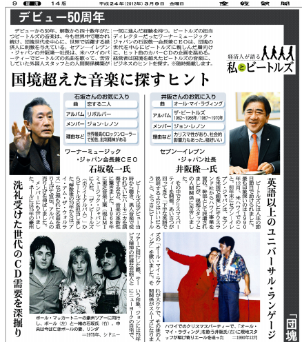 産経新聞で始めた連載「経済人が語る私とビートルズ」