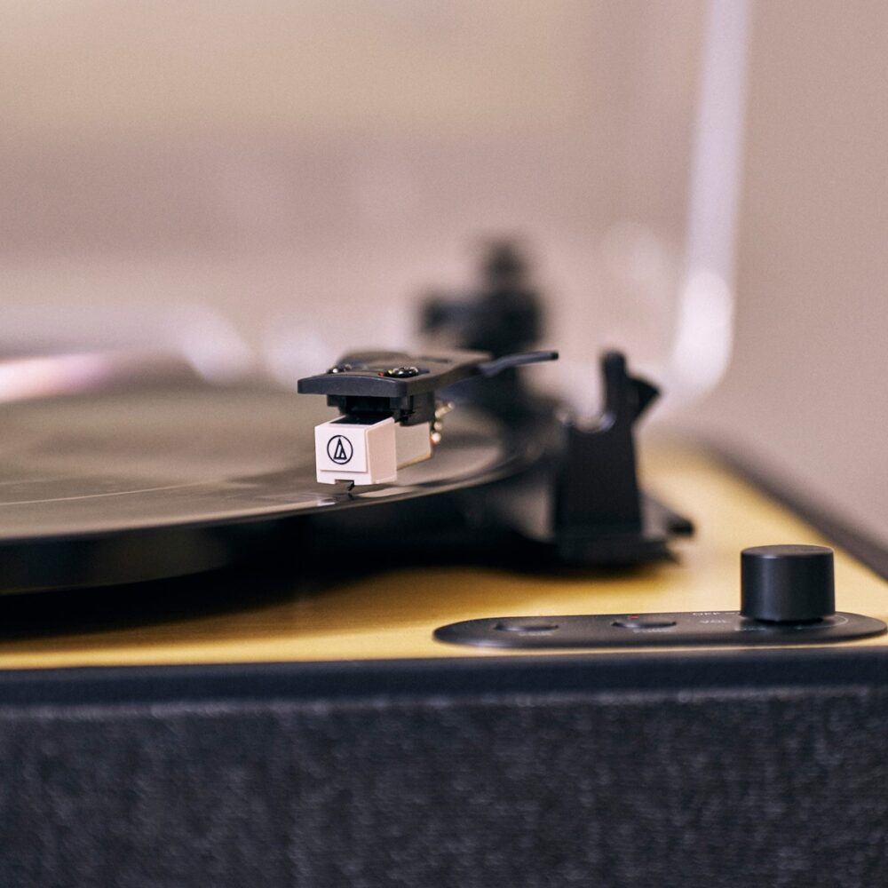 Rise Up Turntableは、レコード体験をシンプルで自由なものにしてくれる。内蔵スピーカーですぐに視聴ができ、Bluetooth(R)で簡単にストリーミングが可能なので、レコードもプレイリストも思いのまま楽しめる。複雑なセットアップや追加の機器は不要で、箱から出して電源を入れ、再生ボタンを押すだけである。
