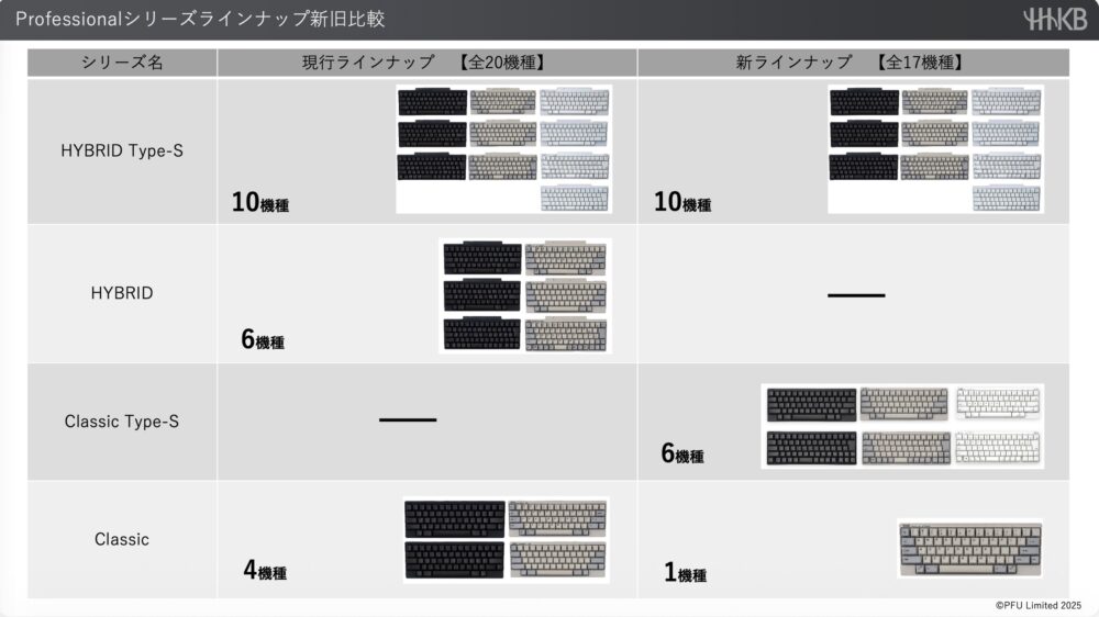 多くのキーボードファンは最上位機種であるProfessional HYBRID Type-Sを買うのだそうだ。だからここのラインナップは変更なし。価格も変わらず、3万6850円。